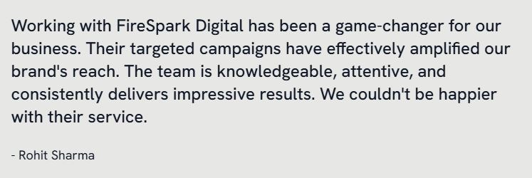 Based in Prayagraj, Firespark Digital is dedicated to providing tailored branding consultations and social media content planning, ensuring your business stands out in the competitive digital landscape.